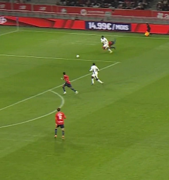 Je sais pas trop. Là, si le Lillois ne fait pas faute, c’est un 2v1 avec le défenseur qui se trouve devant la surface, et qui est clairement dans la merde.