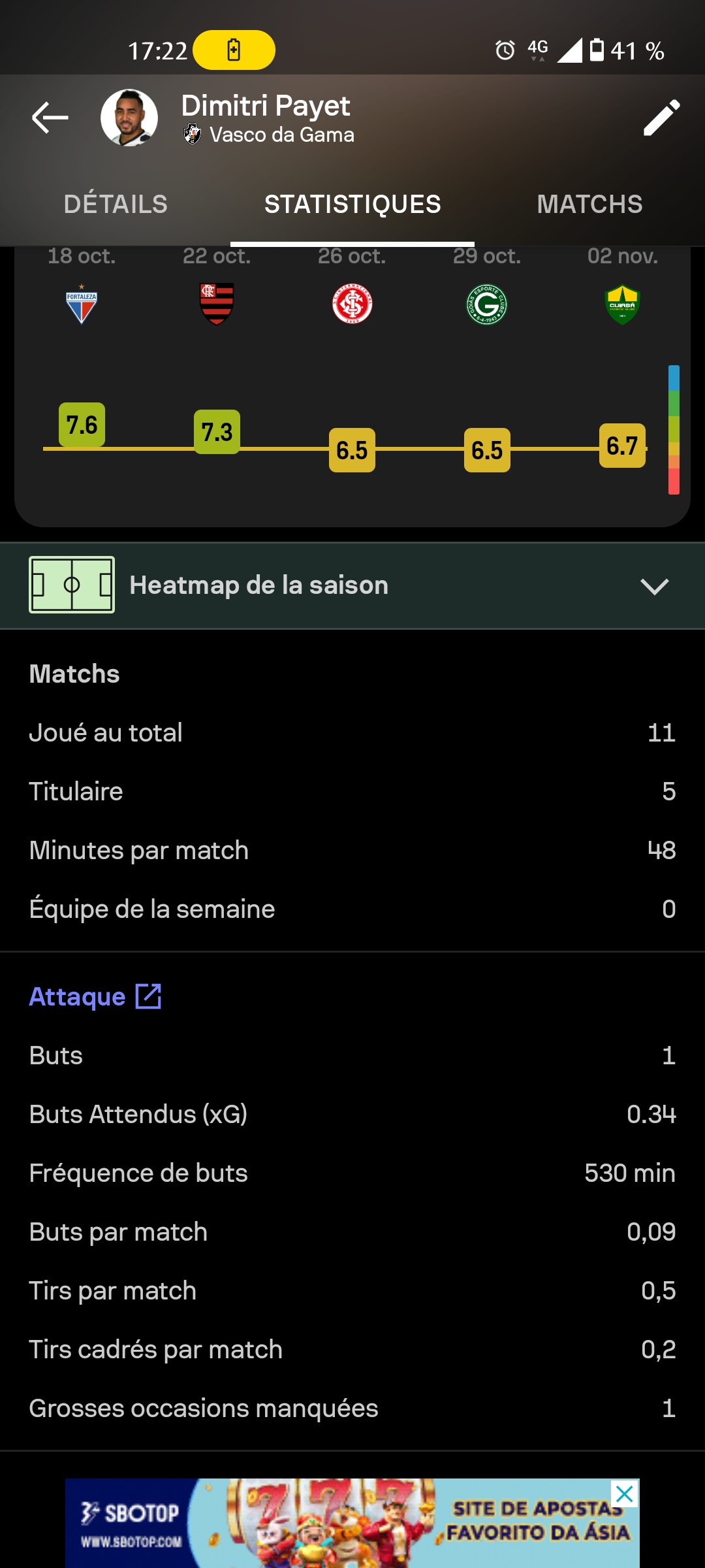 Ugarte par contre fait le chemin inverse. Très moyen sur ses derniers matchs.