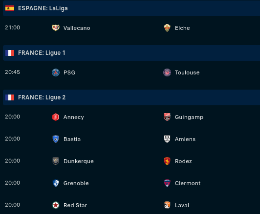 Vendredi : Multi L2 (20h) / PSG - Toulouse (20h45)