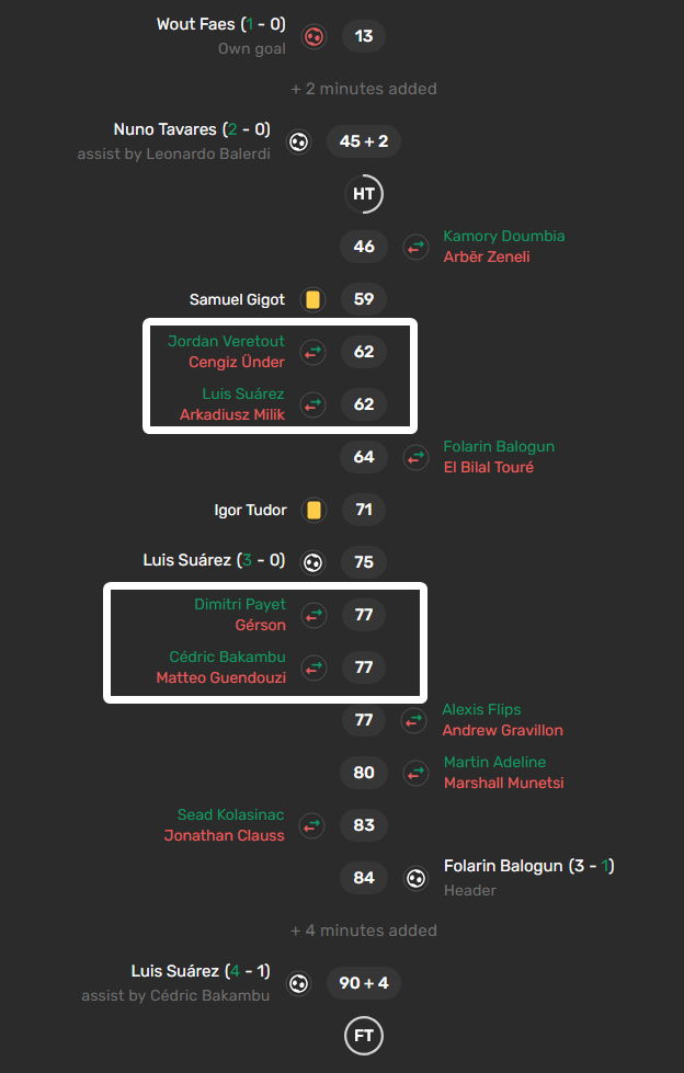 En attaque, Milik, Bakambu, Suarez, Dieng (