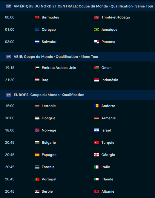 Mardi : 20h45 • Italie - Israël / Espagne - Bulgarie / Lettonie - Angleterre / Portugal - Hongrie