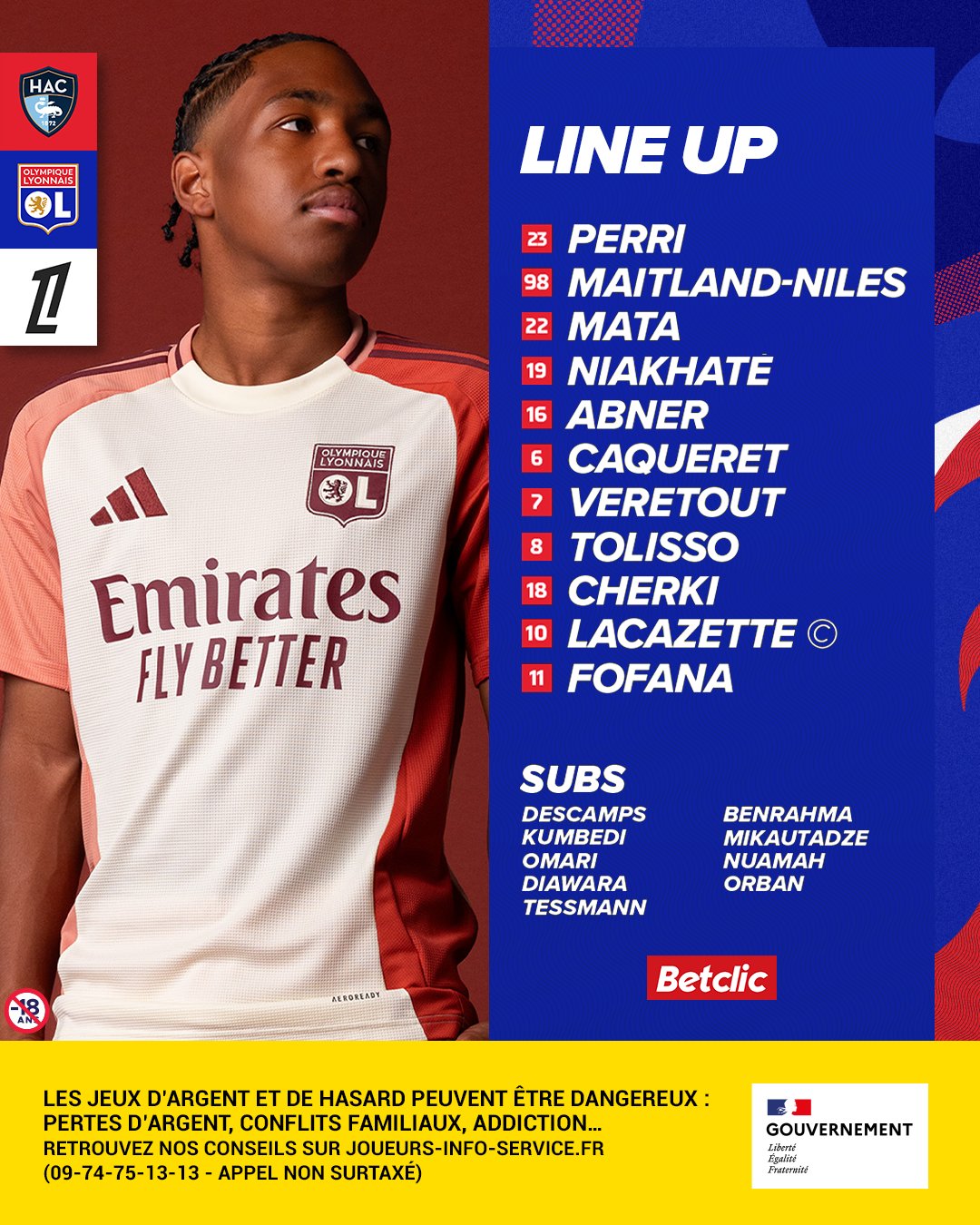 Du coup on a Abner à gauche, Mata dans l’axe et au milieu au lieu de mettre Tessmann il tente de relancer Caqueret en duo avec le très bon Tolisso. On va voir ce que ça va donner avec ces 3 joueurs en moins.