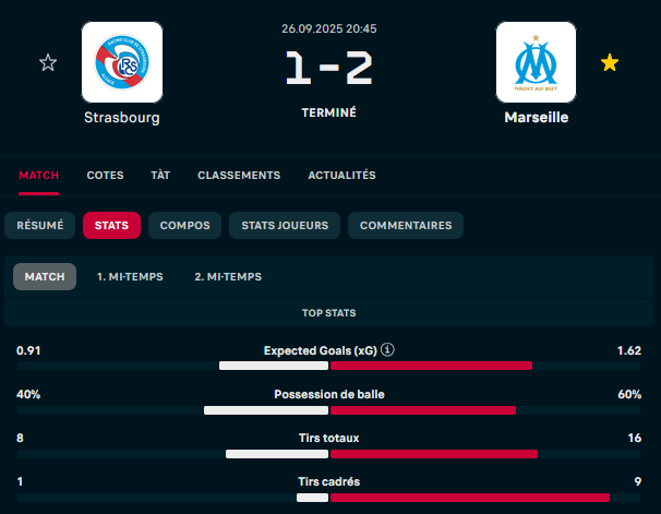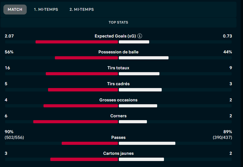 Un peu plus tard j’ai regardé les stats du match