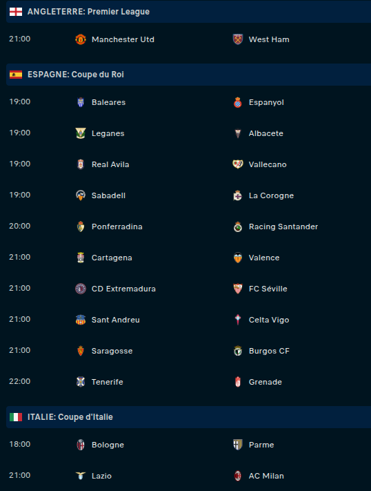 Jeudi : Man Utd - West Ham (21h) / Lazio - AC Milan (21h)