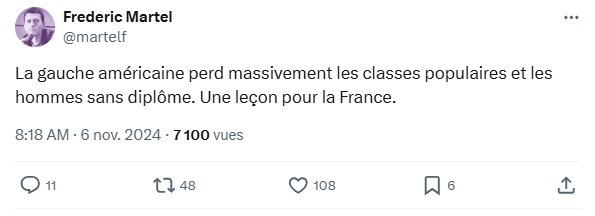 AprĂšs sur la probable victoire de Trump, je pense aussi que sa victoire il lâa construite en « trumpisant » la sociĂ©tĂ© politique amĂ©ricaine. Aujourdâhui mĂȘme Biden ou Harris rĂ©pondent aux provocations et aux injures. Il a gagnĂ© dans le sens oĂč lâoutrance et le mĂ©pris du cap dâen face est devenu la norme.
