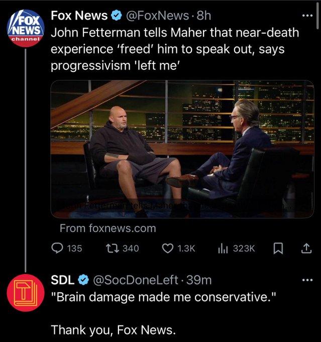 Fetterman dâailleurs trĂšs gros escroc, du niveau de Sinema. Se fait Ă©lire en tant que progressiste, prend la thune des lobbys et devient centre droit