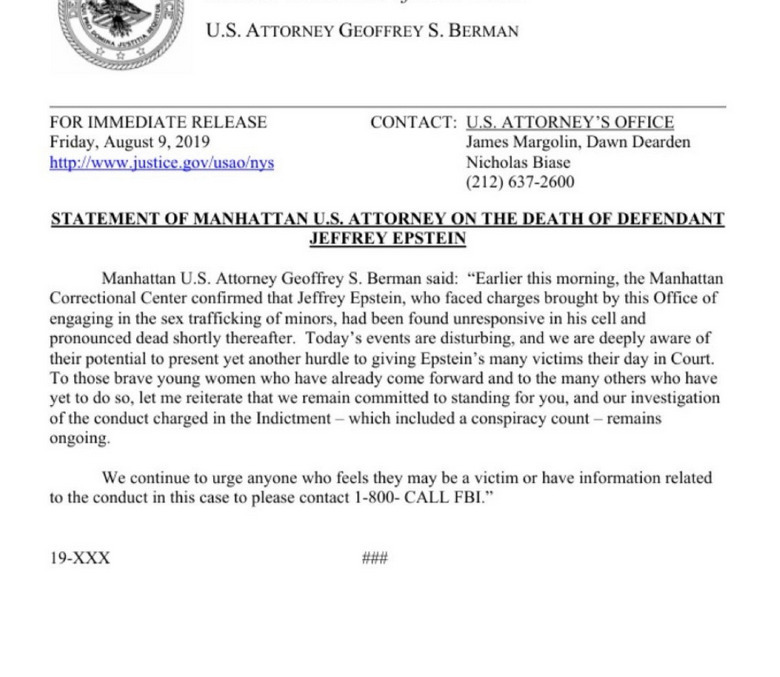 Voici un brouillon annonçant la mort de Jeffrey Epstein