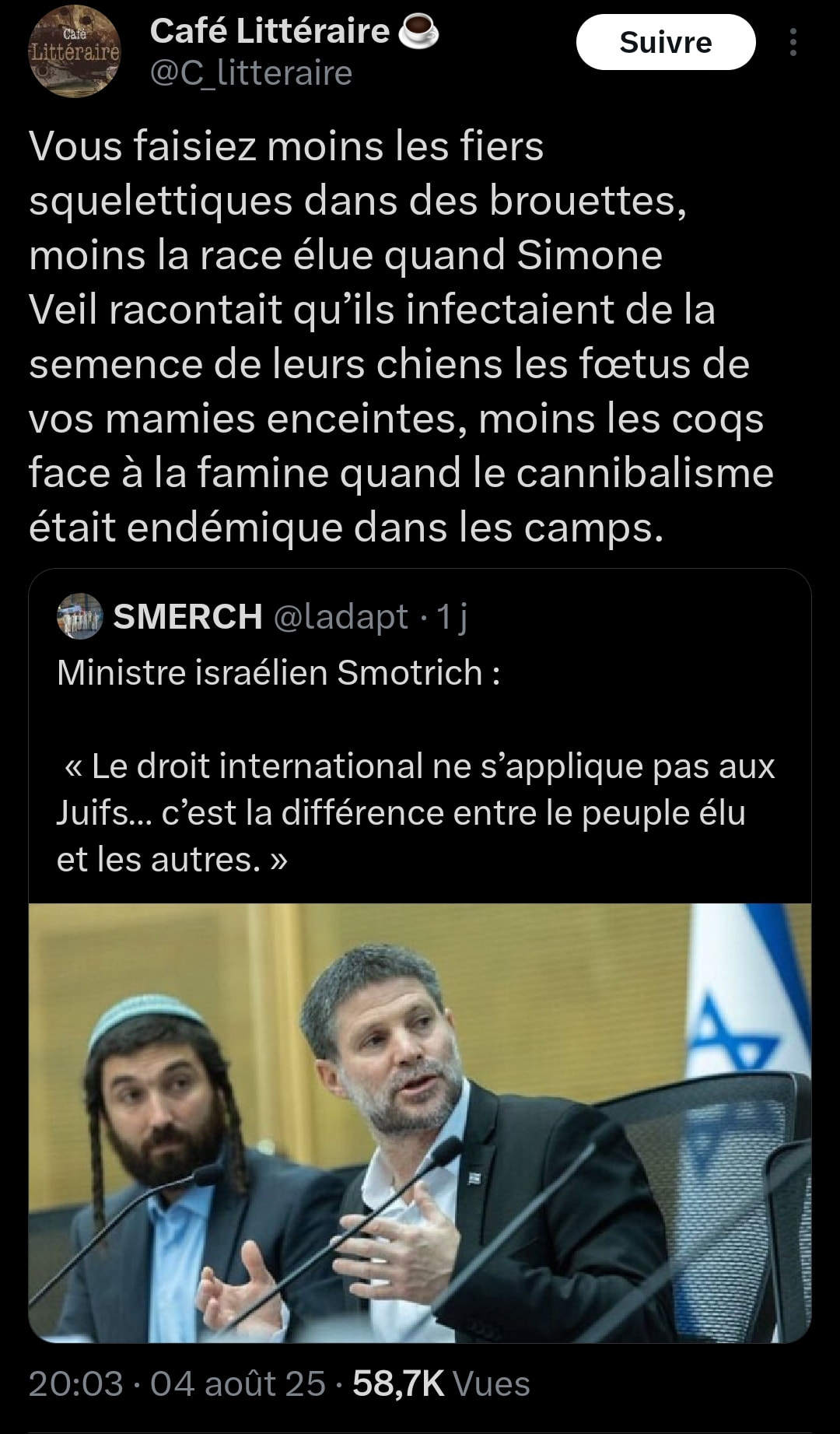 Tu trouves normal que le « droit international ne sâapplique pas au peuple Ă©lu » ?