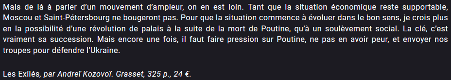 Par contre câĂ©tait Ă©vident que la position actuelle dâune certaine partie de la gauche nâallait pas lui plaire, ni Ă lui ni Ă ceux qui ne veulent plus de Poutine