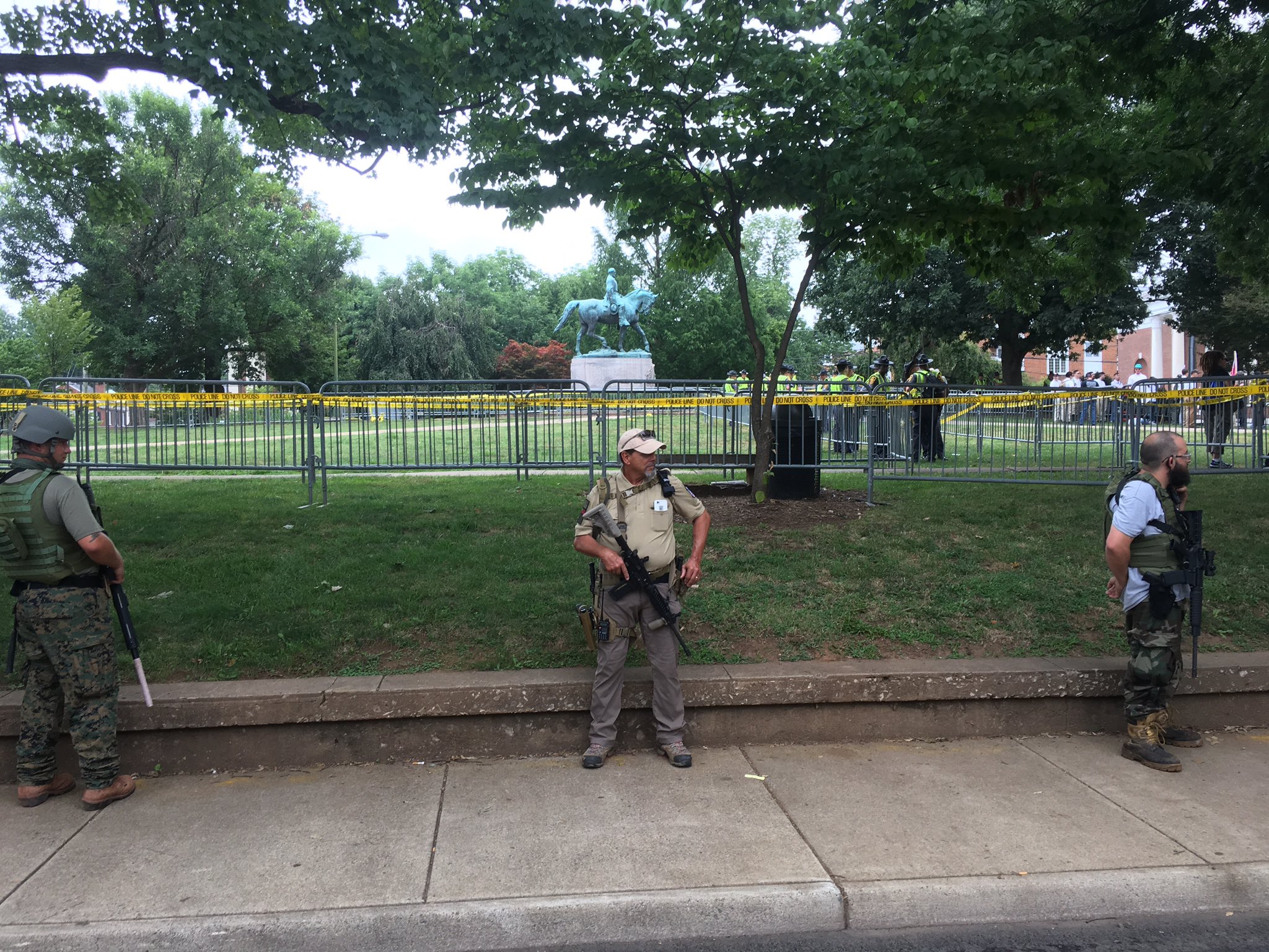 Super glop aussi, des “groupes de milices patriotes”, bardés de M16 en bordure de la manif :