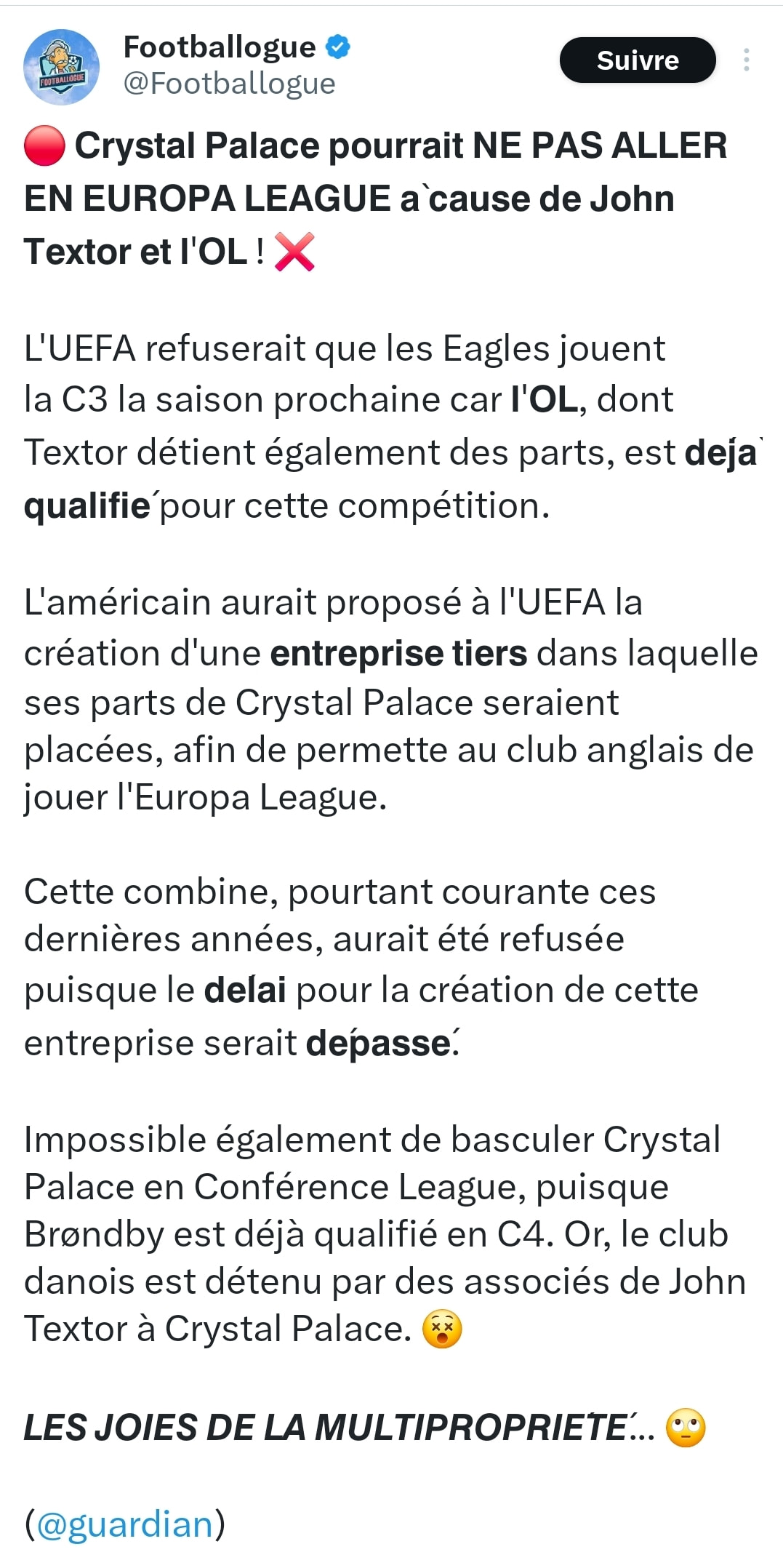 Les clubs Red Bull lâont bien gĂ©rĂ©, Toulouse et le Milan lâont gĂ©rĂ©, dâautres par le passĂ© Ă©galement. Mais encore une fois, Textor sây prend Ă la derniĂšre minute et nâavait pas anticipĂ©.. du coup le dĂ©lai pour changer et faire la combine habituelle comme ils ont tous faits ne pourra pas ĂȘtre effectuĂ©e.