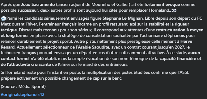Mais en tous cas je serai + rassurĂ© par un profil de ce type Ă court terme plutĂŽt quâun entraĂźneur Ă©tranger peu expĂ©rimentĂ© qui ne connaĂźt pas la L2/L1.