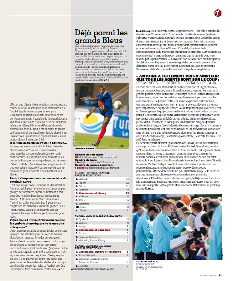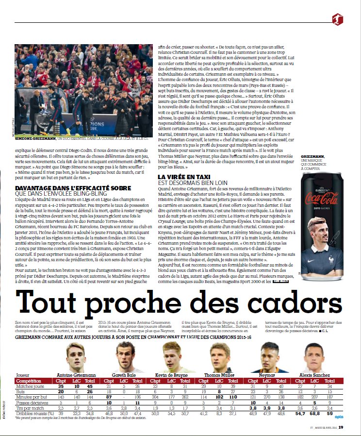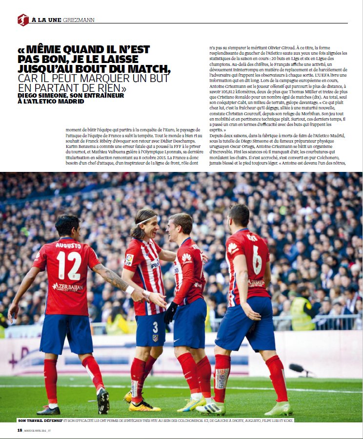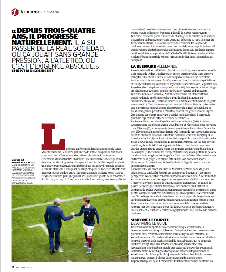 Pour ceux qui veulent lire lâarticle sur Griezmann dans le dernier FF