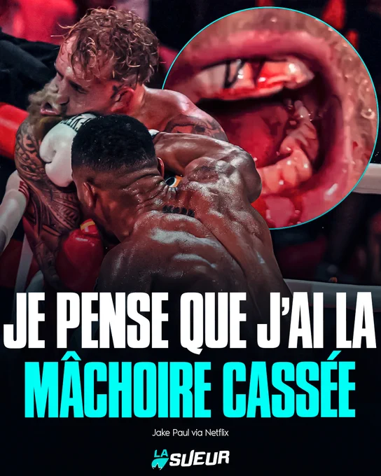 @lasueurđŁïž "Je pense que jâai la mĂąchoire cassĂ©e."Jake Paul a quand mĂȘme senti la puissance dâAnthony Joshua, malgrĂ© toutâŠ