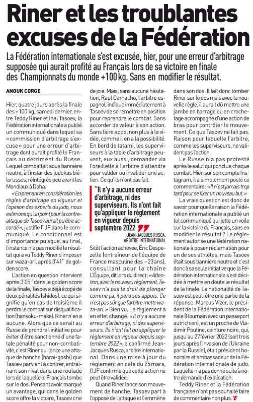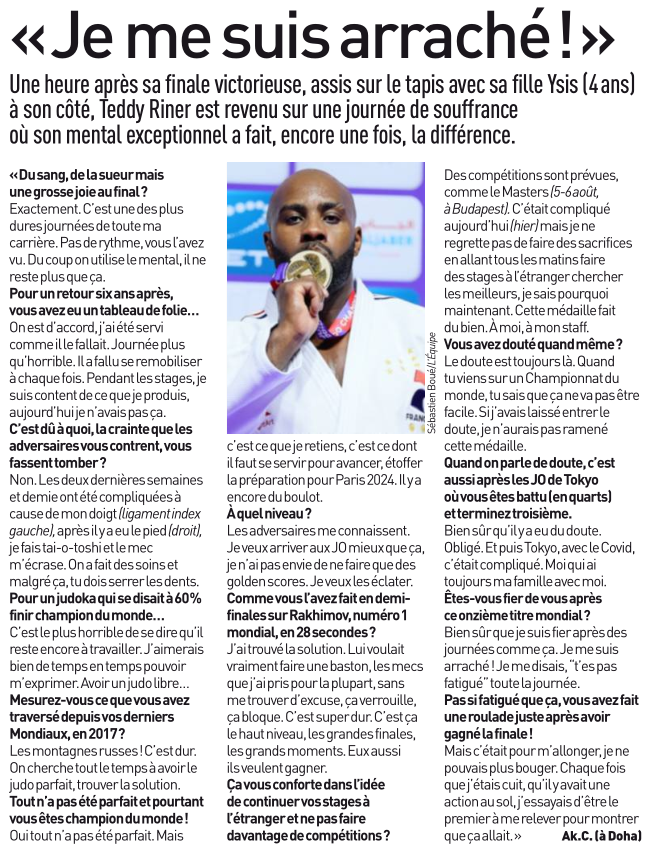 Riner en finale des CDM sur la chaĂźne lâĂ©quipe Ă 17h00