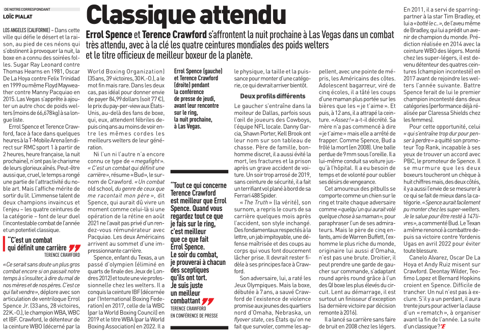 «Ce sera une exhibition apparemment, pas de knockdown ou quoi que ce soit, a-t-il lancĂ© Ă Boxing Social. Je ne sais pas, je ne fais que vous dire ce que jâai entendu.»