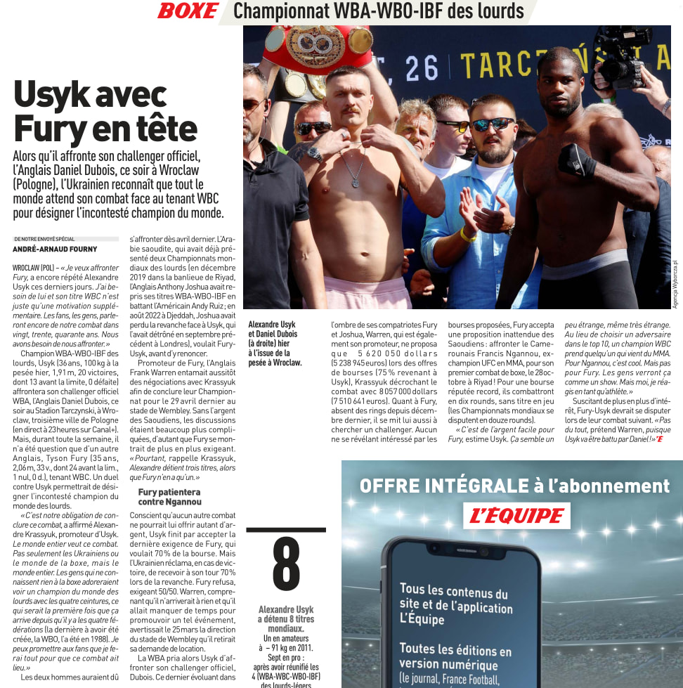 Dans 99 combat sur 100, Fury se balade vers ce quâil veut, KO, TKO, dĂ©cision etc, mais avec un NGannou⊠câest le seul truc un peu intĂ©ressant du combat de toute façon.