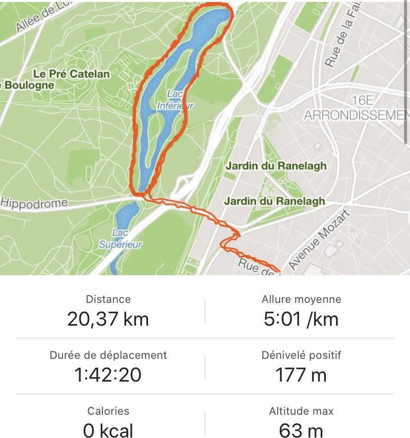 Jâai dĂ©marrĂ© fort car jâavais froid, ça booste pas mal la moyenne mais jâai pas mis de coup dâaccĂ©lĂ©rateur ensuite, jâaurai fini dans les 6â au km vu comment jâallais doucement dans les derniĂšres minutes.