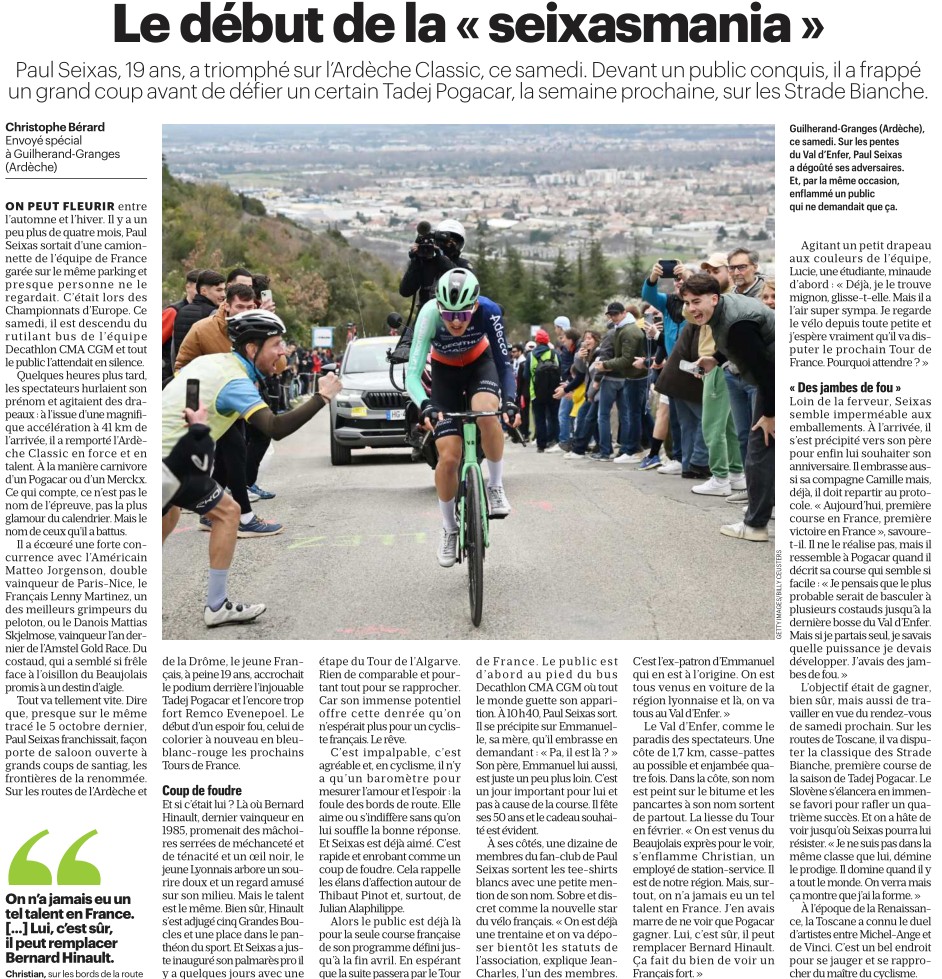 Et surtout URR a Ă©tĂ© invitĂ© nul part, aucun Paris-Nice ou DauphinĂ© il me semble. Câest gros.