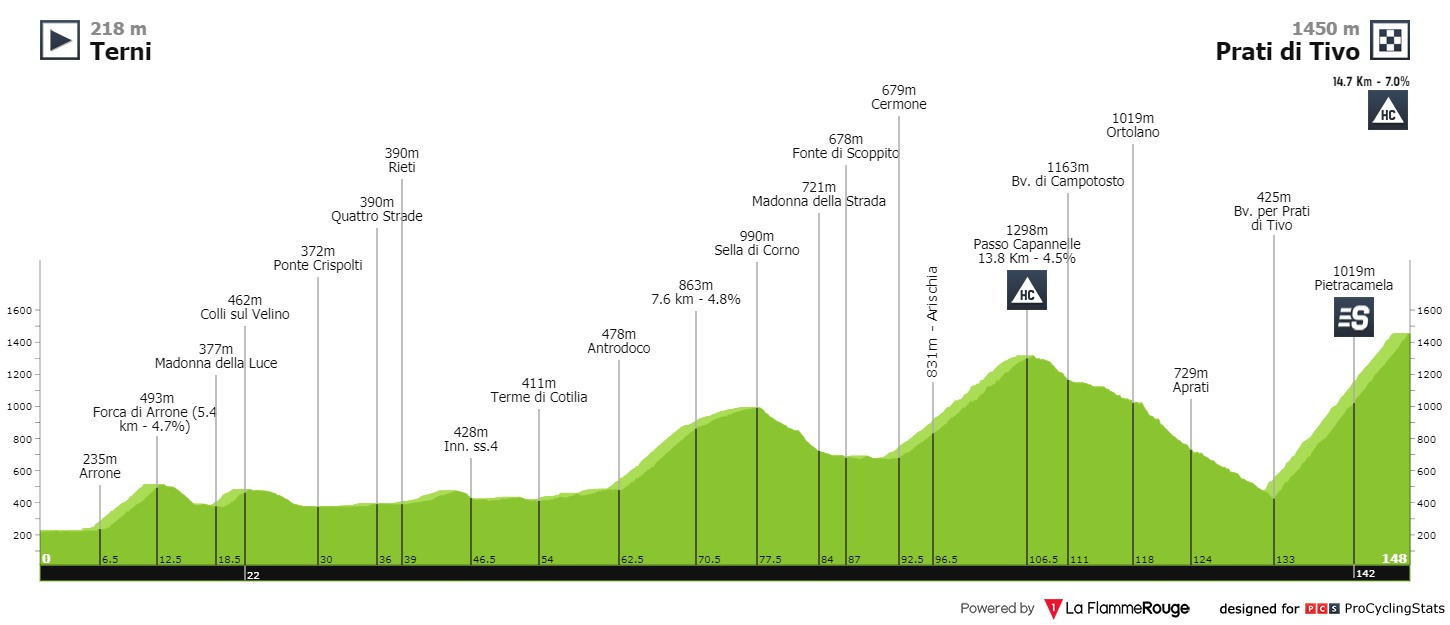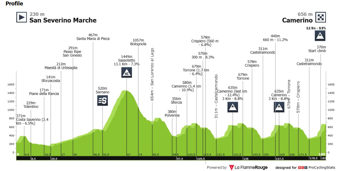 190 bornes encore mais une trĂšs longue montĂ©e bien roulante dans le premier tiers histoire de bien fatiguer tout le monde avant les derniĂšres « petites » montĂ©es de 3-4 kilomĂštres sur la fin de lâĂ©tape.