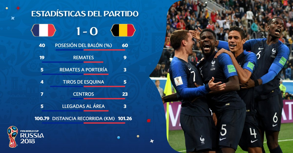 Kante, MbappéFace à une équipe belge qui a eu la possession et un gros temps fort après le quart de jeu, la France a resserré les rangs et su se montrer de plus en plus dangereux offensivement. En utilisant un jeu rapide, avec l’appui de ses latéraux, ce sont les bleus qui ont mieux terminé la première période. Vite récompensés en seconde, la France a tenu contre une Belgique un peu bloquée offensivement. Ils n’ont pas trop su emballer la rencontre, déstabiliser le bloc adverse. Sans deux très bons gardiens, impossible de savoir quel aurait été le scenario, les deux portiers ont sorti des parades décisives à des moments clés.