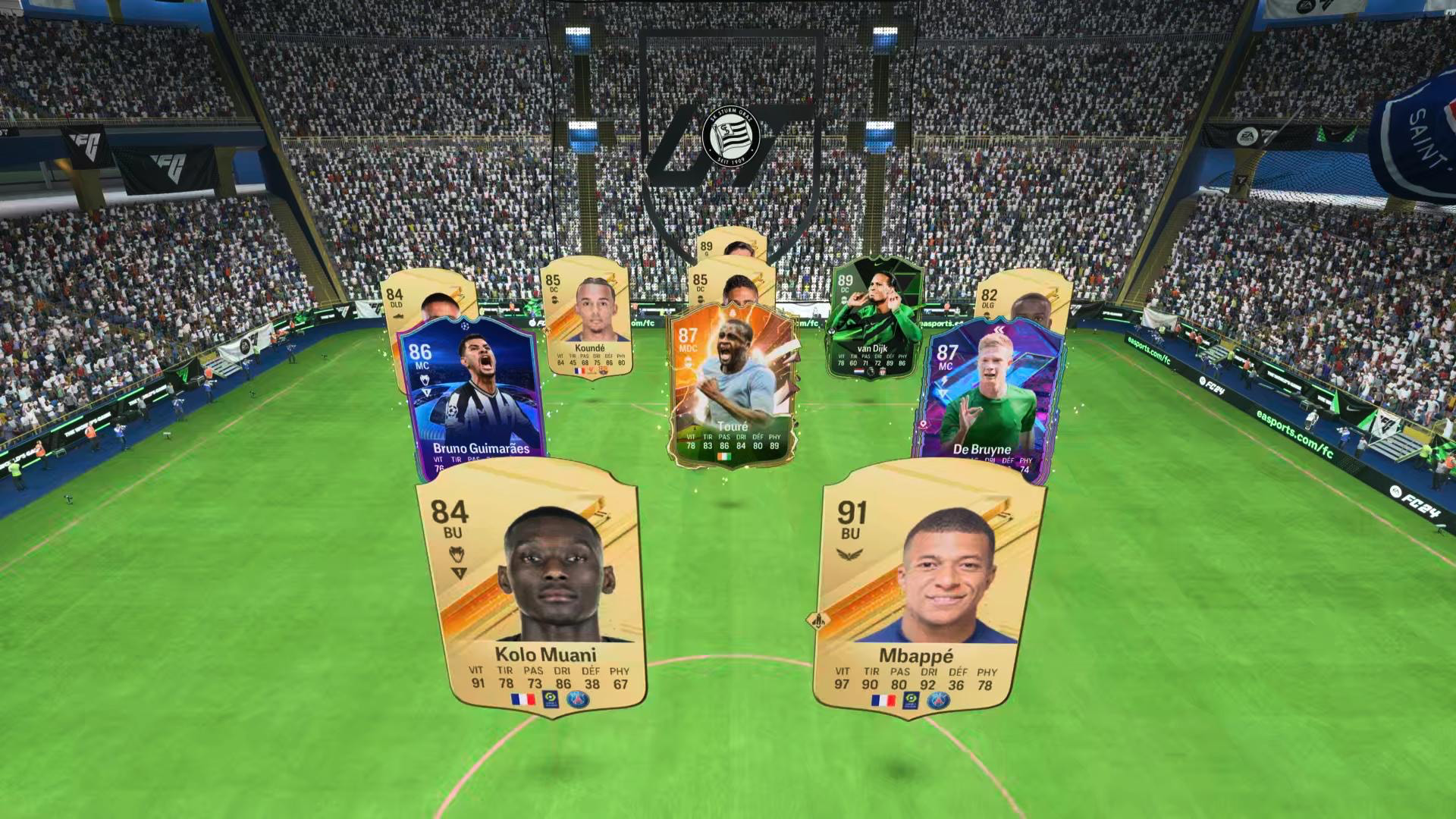 Deuxième gros pack avec 24 joueurs rares, je vois français, BU, PSG… mon coeur s’arrête. Kolo Muani… J’ai quand même une belle petite équipe, j’ai Oblak et Pedri qui sont tombés aussi.