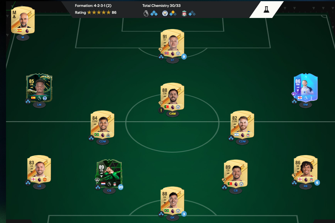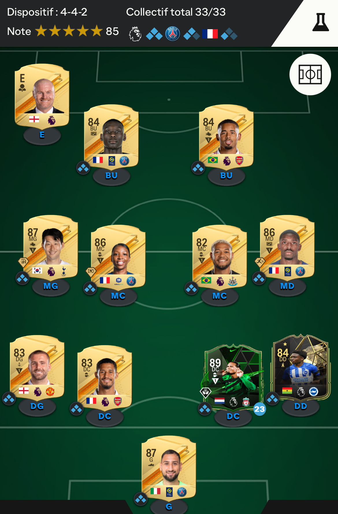 J’utilise volontairement mes prêts pour pas les laisser pourrir comme sur le 23 ^^ Sachant qu’après Ederson ce sera pour le moment Raya. Osimhen pour Haaland, Ruben Dias pour Van Dijk. Et Alexander Arnold je l’ai en regular aussi. Reste a voir comment je vais réussir à intégrer Osimhen là dedans ou si je le garde en sortie de banc ![]()