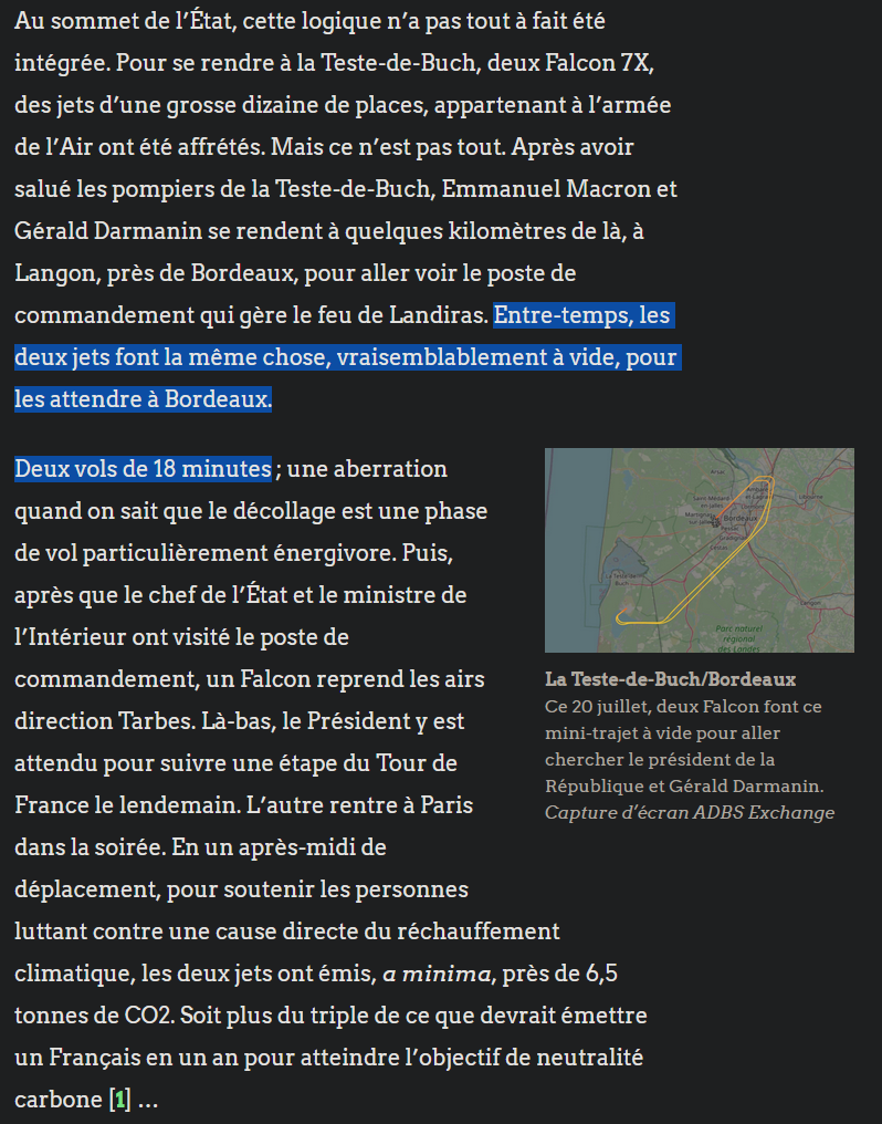 Vous vous souvenez des vols de falcon lors des incendies de Bordeaux, bha câĂ©tait pire que prĂ©vu en fait.