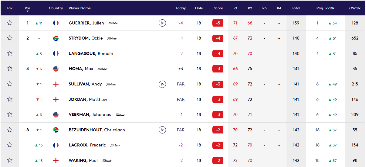 AprĂšs deux tours, Julien Guerrier est leader au NedBank en Afrique du Sud, une superbe journĂ©e pour lui. Romain Langasque est solideâŠ