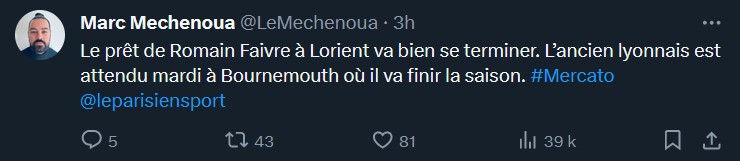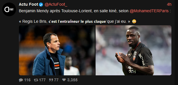 ça me fait penser un peu Ă Renato Ă Lille. Ce qui me surprends câest que Lorient officiellement joue le TOP 10 et ne joue pas lâEurope.