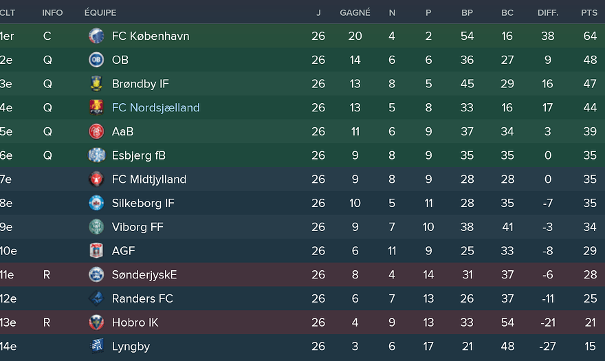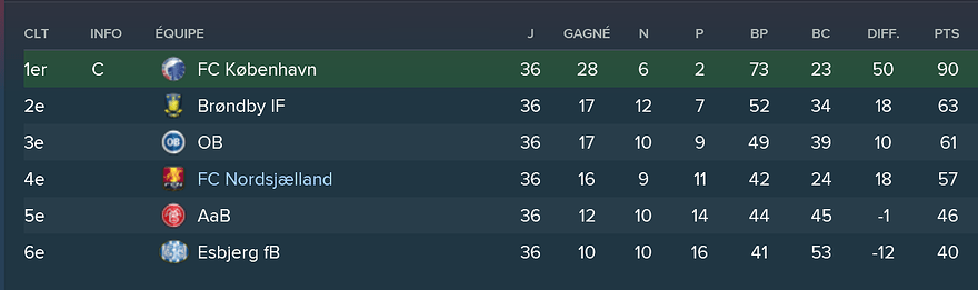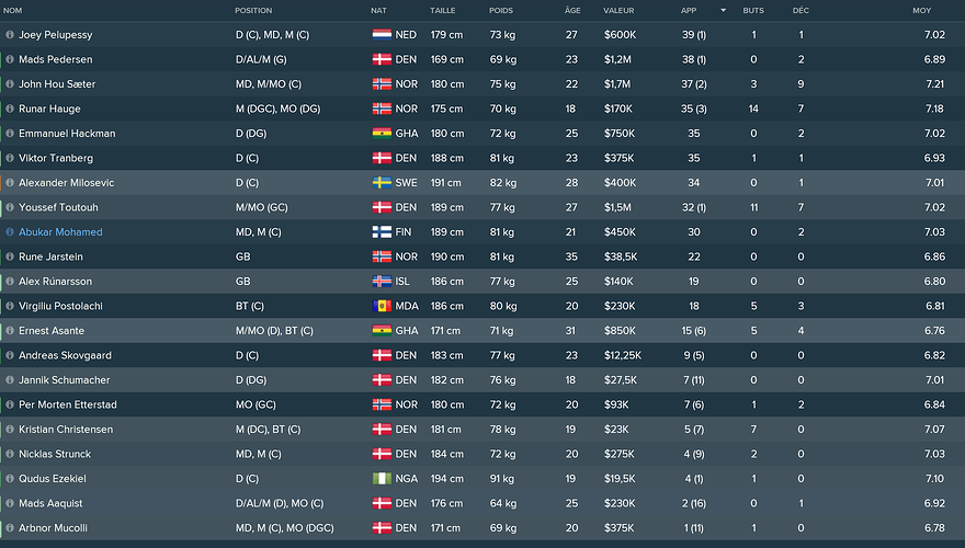 Le fait qu’on ne progresse pas/peu en championnat est frustrant mais je suis en train de monter une bonne équipe de jeunes qui pourrait rivaliser avec Copenhague d’ici quelques années. Les talents que l’on recrute ne sont pas assez loyaux et partent après 1/2 saisons. Je pense qu’il faut les former dès le plus jeune âge pour qu’ils soient plus fidèle à l’institution.