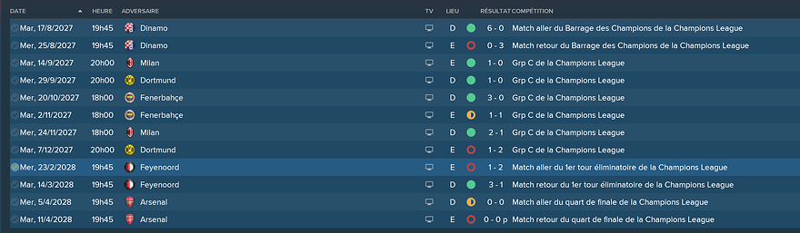 De gros cartons en tours préliminaires avec notamment un 8-0 sur la pelouse du Dinamo Zagreb (wtf) avant de perdre surprenamment contre Göteborg.