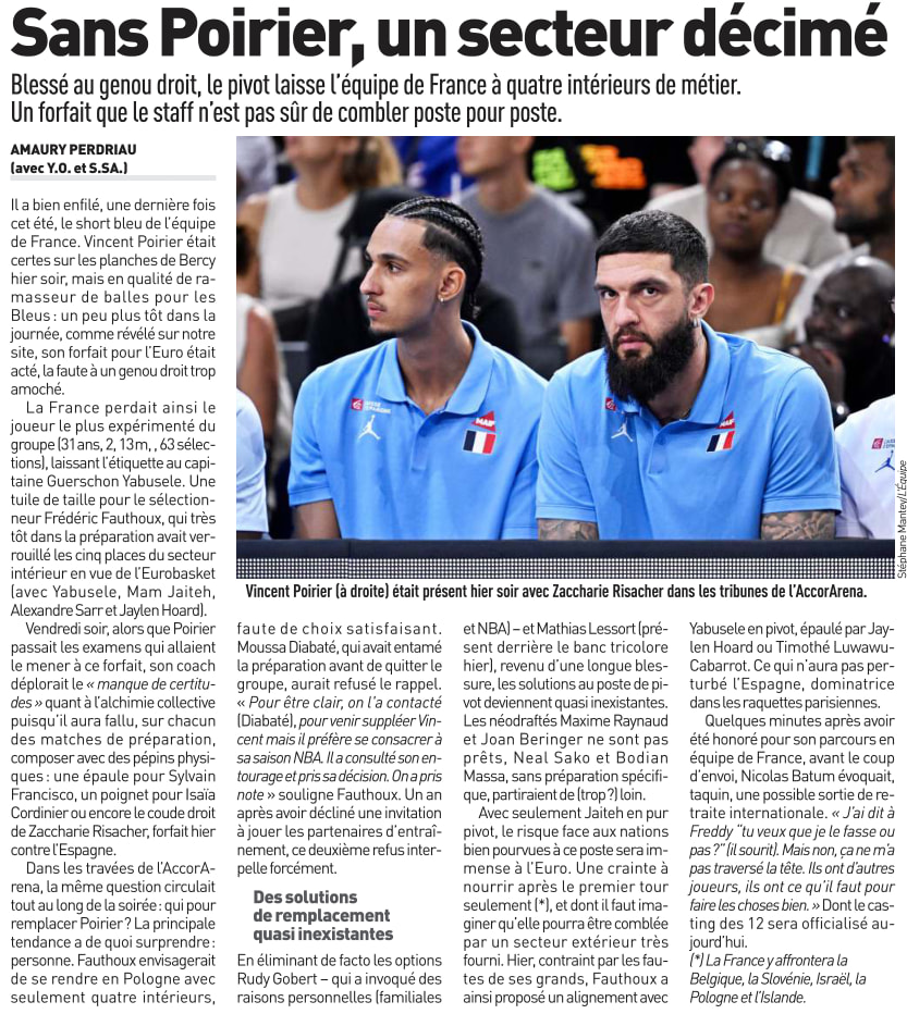 J’ai regardé le premier match face à l’Espagne, le niveau de Poirier était abyssal. Pas certain qu’il manque tellement à l’EDF.