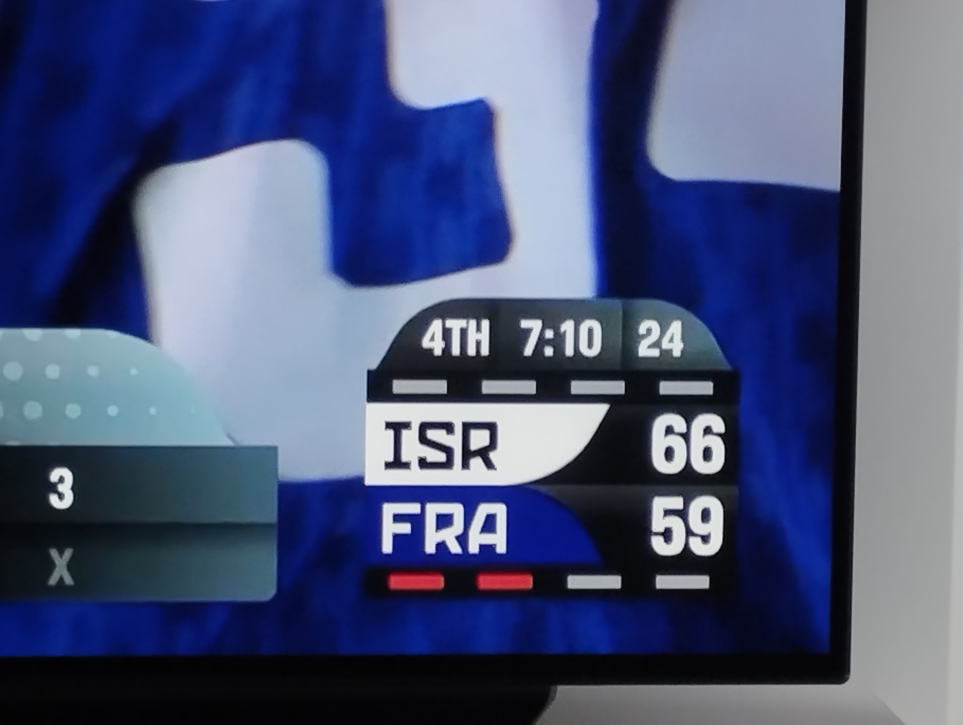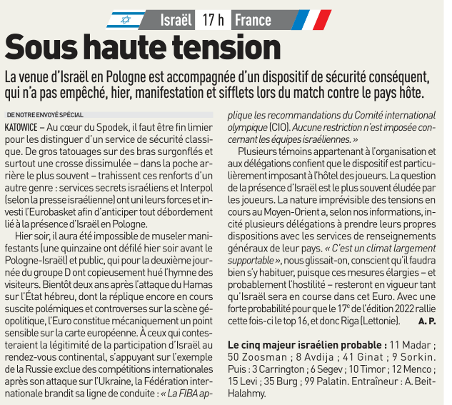 Tu ne peux pas gagner avec ce pourcentage à 3 points aussi. Les Israéliens faisaient une zone et personne du cÎté Français pour sanctionner de loin.