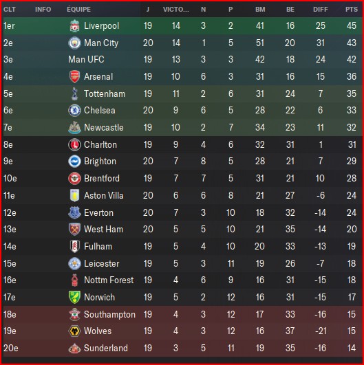 Fini la première saison invaincu, largement en tête. J’ai joué en 451 pour plus de stabilité.