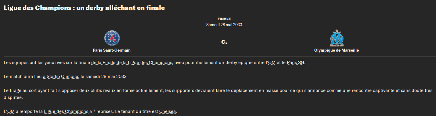 Le PSG, j’ai pas vraiment compris. On a pas mal dominé à l’aller et on s’est fait éteindre par Mbappé. Le retour le match a été serré jusqu’au bout et nous marquons deux 3 buts à partir de la 80ème.