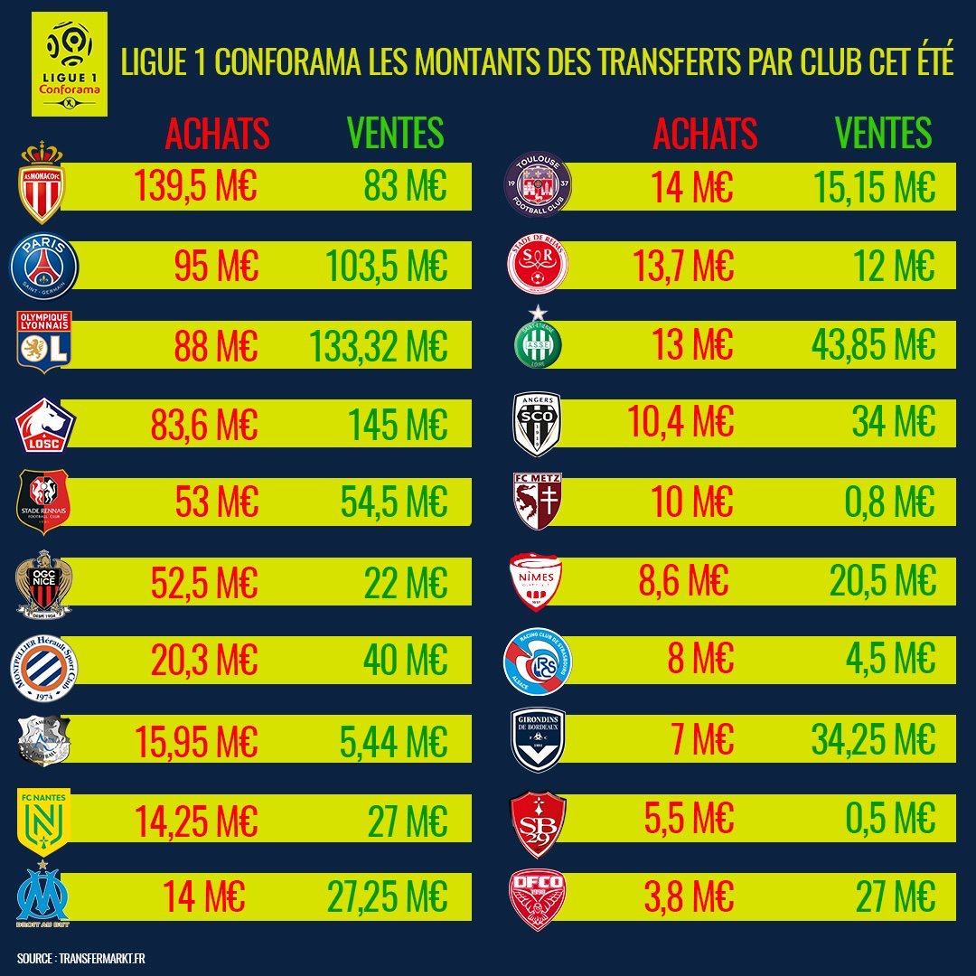 Juste Nice et Monaco qui ont dépensés pas mal par rapport aux rentrées.