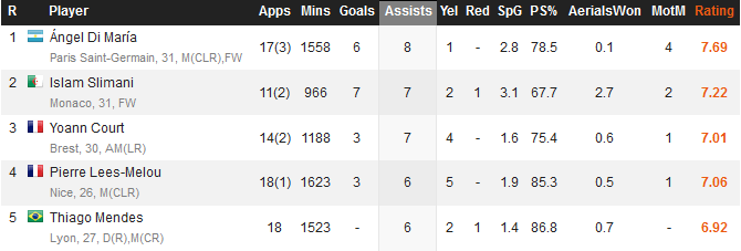 Je viens de regarder les classements des buteurs et passeurs, je mâattendais pas Ă voir Court & Mendes ici.