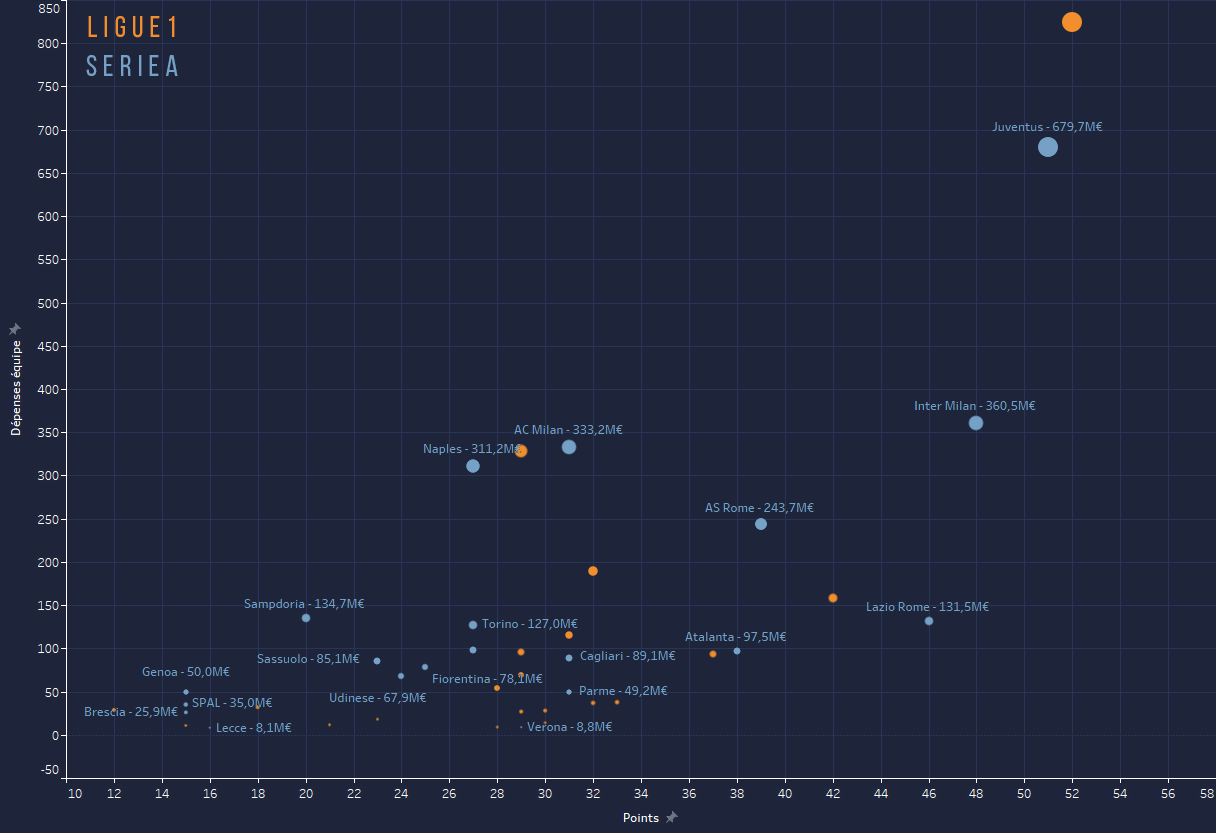 - Ăquipes au dessus de 50M⏠en Italie ; 15 (En comptant Parme Ă 49.2MâŹ)
