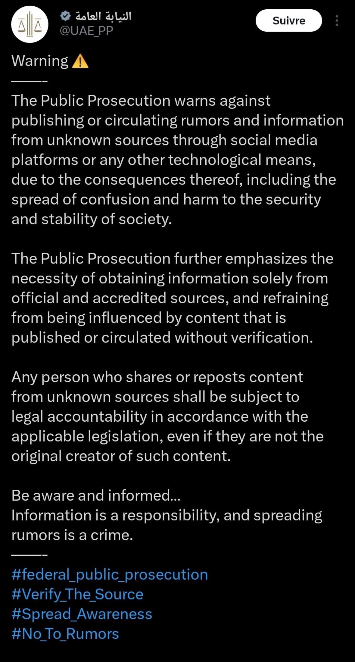 Depuis cette publication dâun ministĂšre des EAU, bizarrement les influenceurs reprennent leur petit train train de dropshiping mais arrĂȘtent de pleurer sur les rĂ©seaux.