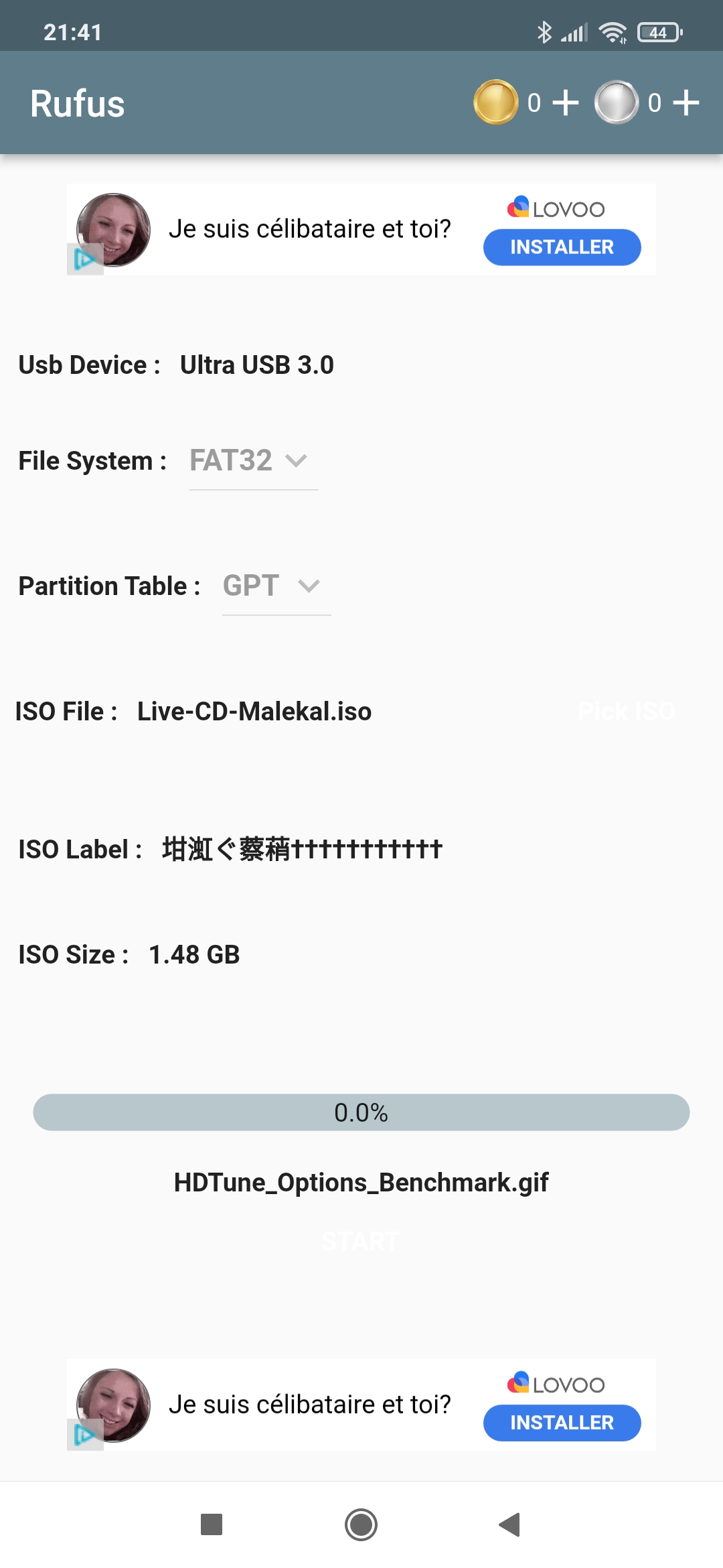 J’ai réussi a télécharger un fichier iso qu’on m’a conseillé sur CCM mais Rufus n’y arrive pas. J’ai le chargement en bas qui defile mais reste à 0% et après 20min j’ai un message d’erreur.
