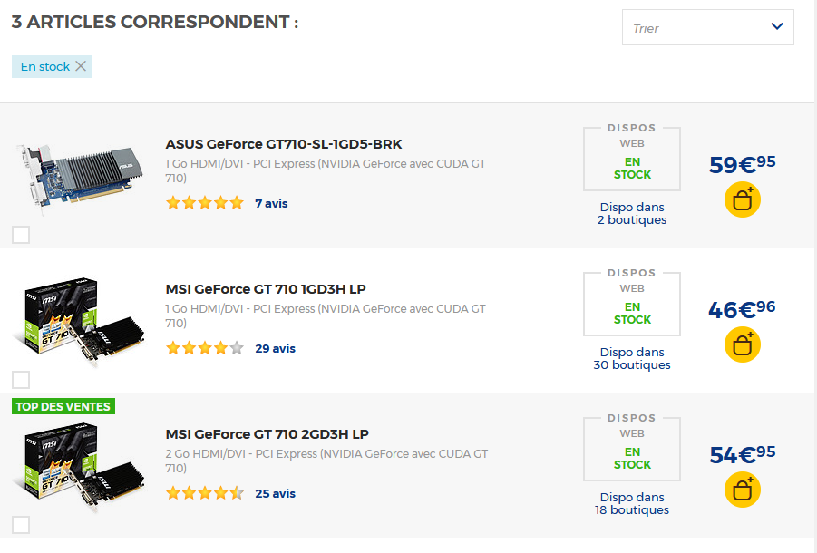 Donc pour les GPU, c’est Leboncoin/Ebay pour des cartes neuves à un prix de malade ou rien. (Ou de la moule quand tu tombes sur une carte en stock une fois par mois)