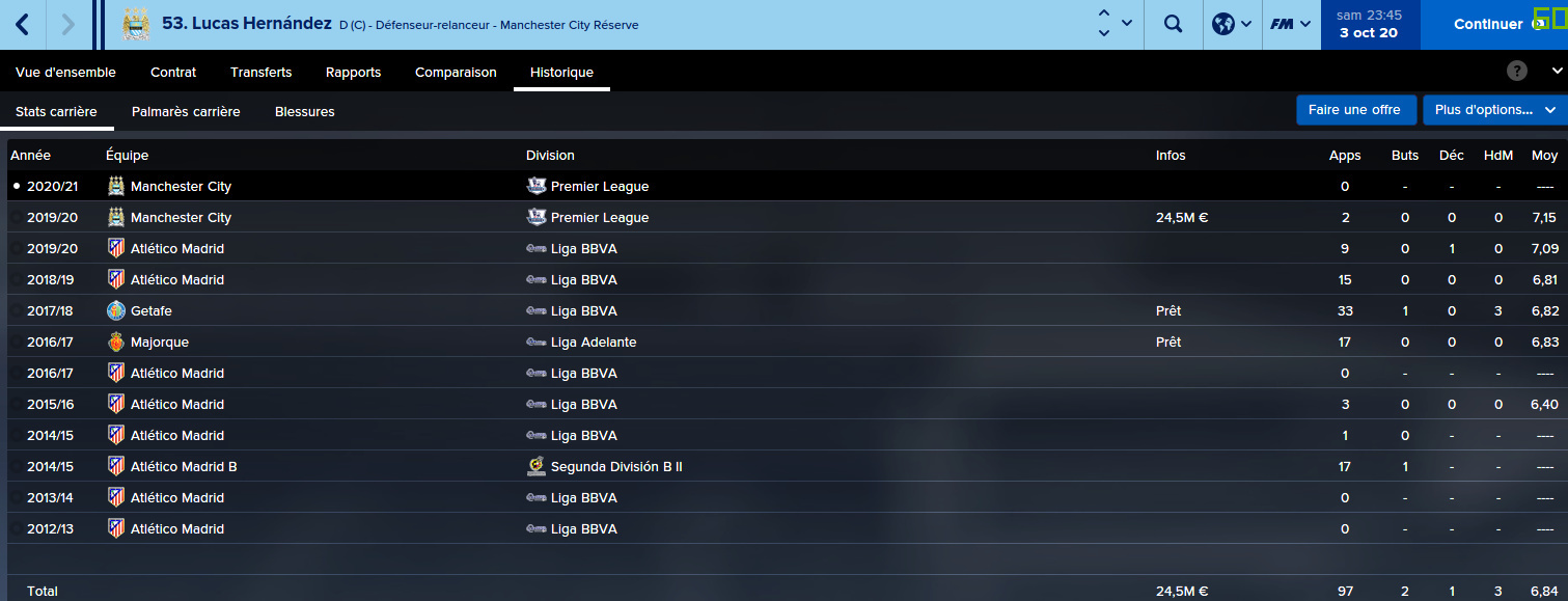 Une fois n’est pas coutume, je n’ai acheté personne en hiver (enfin si, deux jeunes qui vont en reserve), j’avais un equilibre parfait sur l’équipe. Oui ça fait peur.