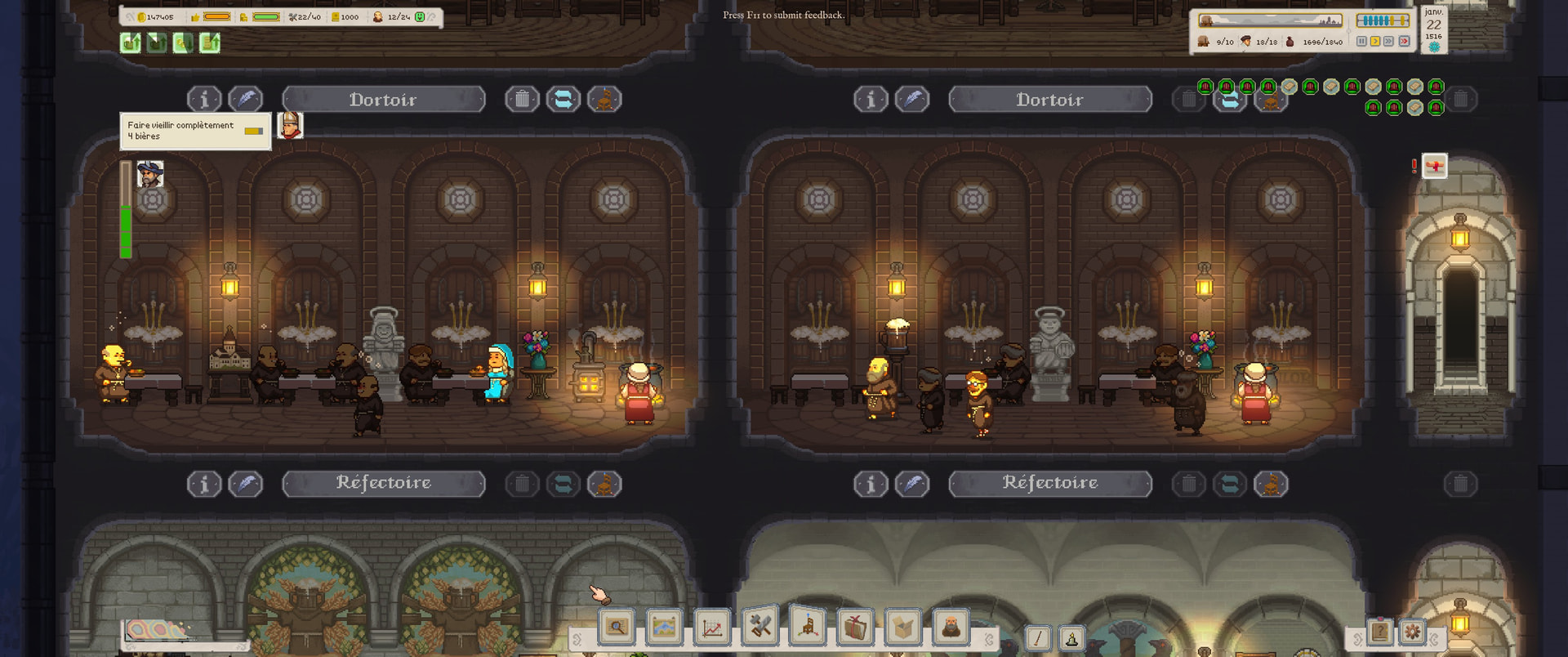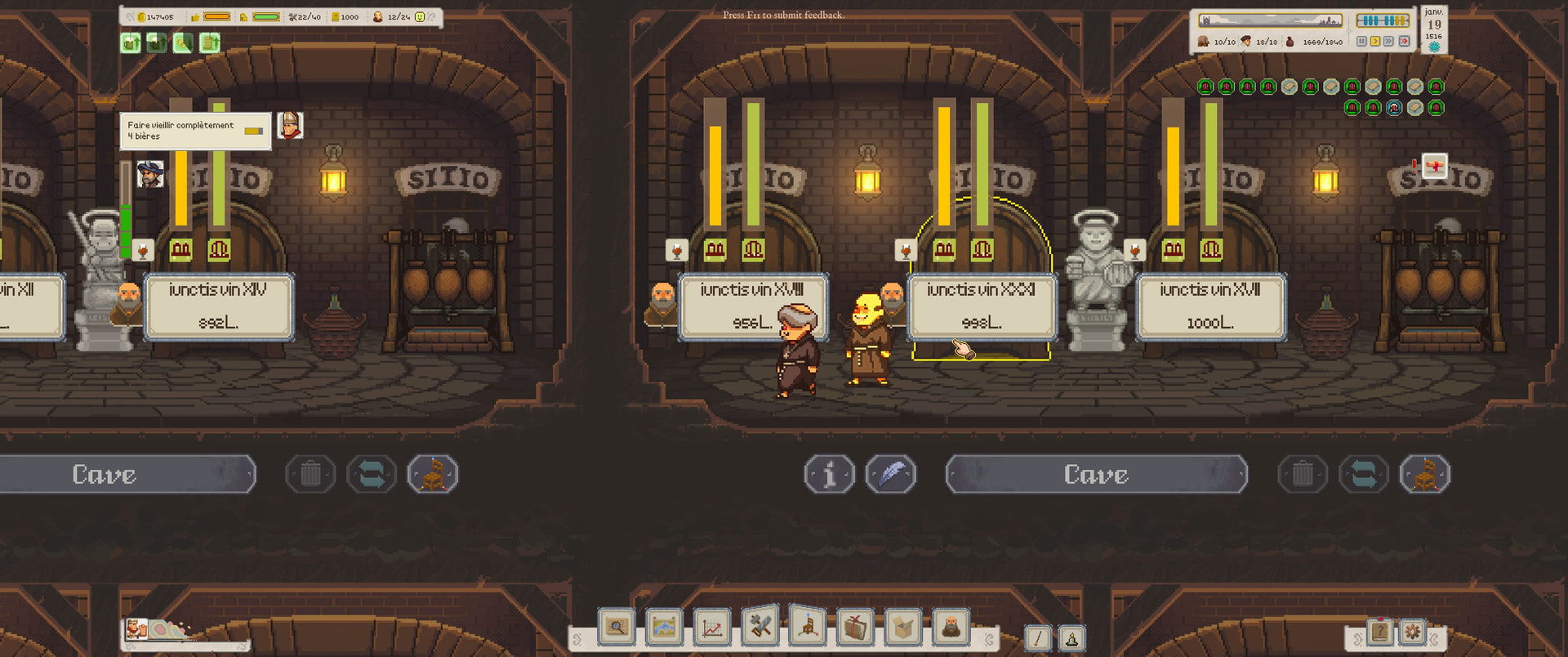 La progression est linĂ©aire et vraiment bien foutue. Au dĂ©but tu essaies surtout de gĂ©rer lâargent et la progression, aprĂšs tâes plus dans lâoptimisation. Du genre faire des biĂšres plus fortes pour que les moines et nonnes soient plus motivĂ©s et fassent des recettes ou des biĂšres plus cool. Mais pas trop fortes sinon iels finissent raides par terre et nâont aucune productivitĂ©.