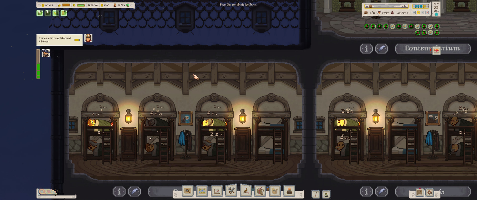 Jâai lancĂ© une nouvelle partie hier et jâaccroche bien. Je pense que je nâirai pas au bout de lâexploration de la map ou construire 7+ Ă©tages mais je dois pouvoir faire 15-20h sans trop de soucis.