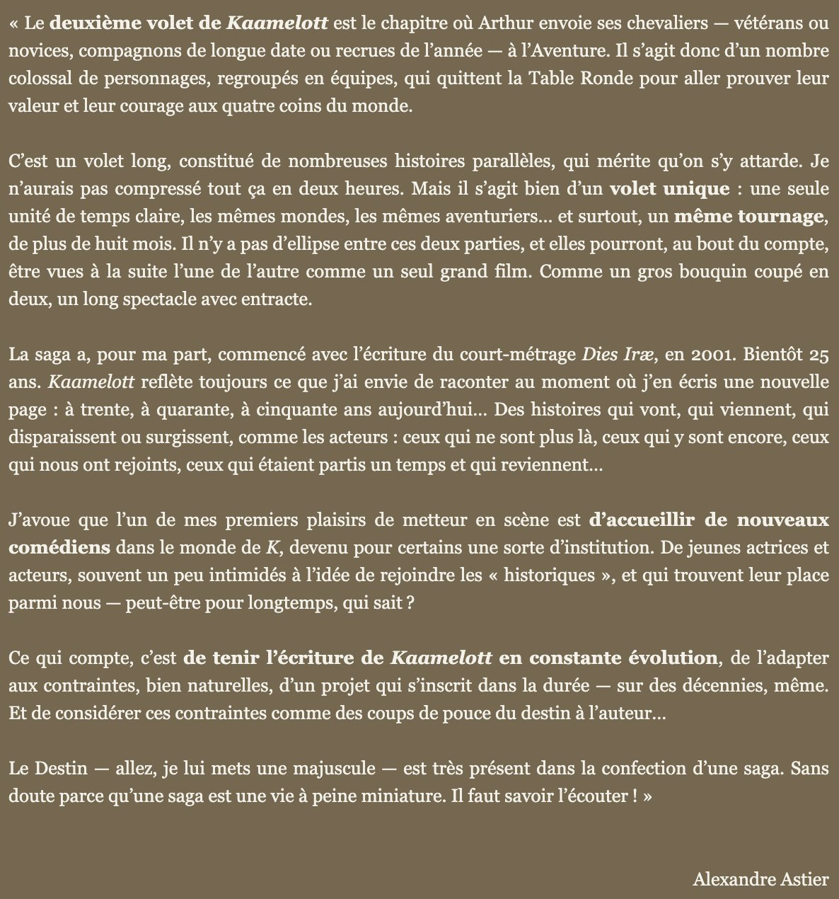 Mais ça fait chier un Kaamelott sans lui.