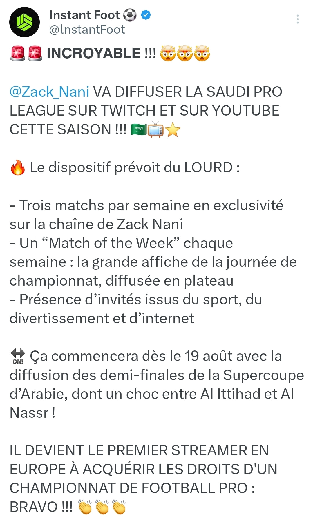 Je vais attendre l’annonce officielle de DAZN avant de me prononcer, ils sont capable de dire qu’il y a tous ces championnats mais enfait t’auras des highlights ou 3 matchs paumés.