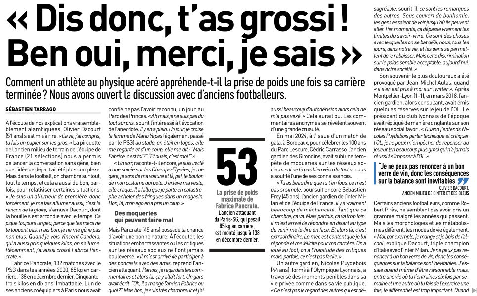 Je me suis parfois dit que si jâavais Ă©tĂ© joueur pro jâaurais repris du poids Ă la fin de ma carriĂšre.