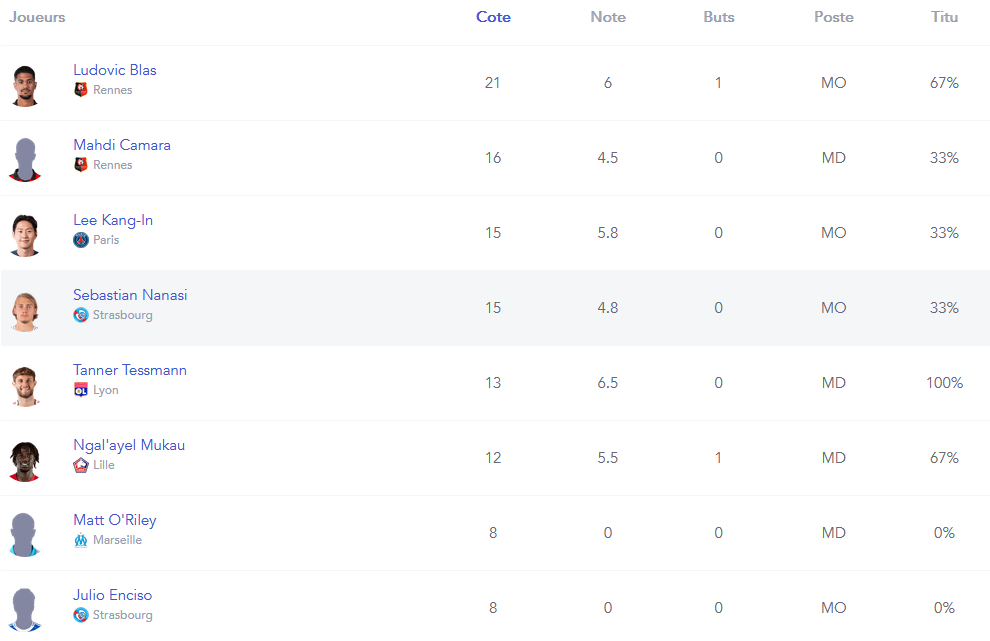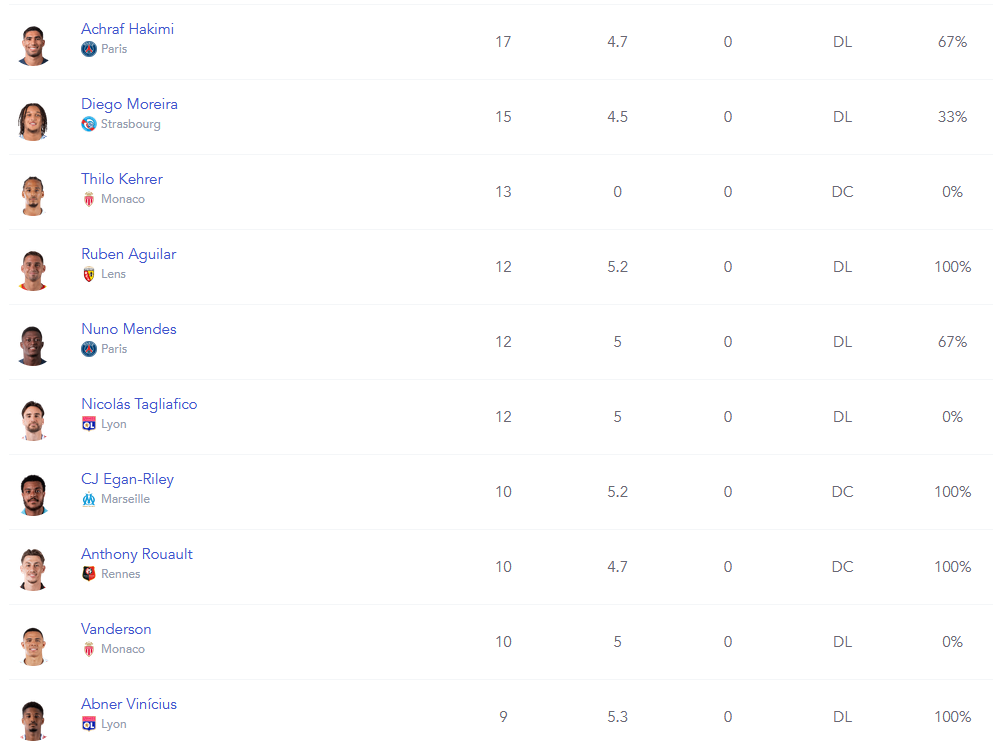 On complète ça avec des tauliers comme Tagliafico, Vanderson, Kherer, Aguilar, Rouault et Abner.