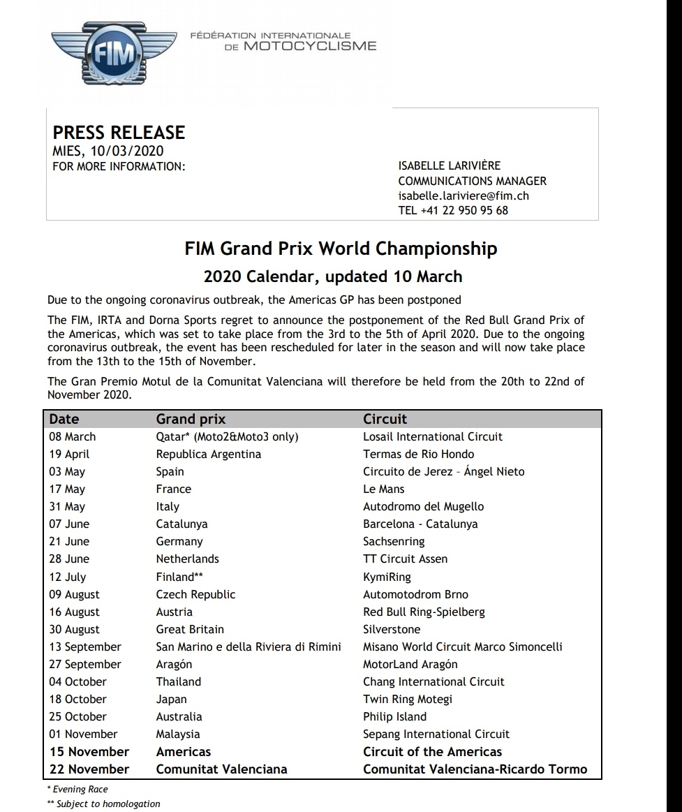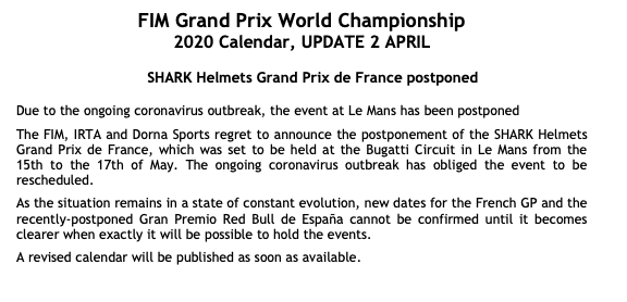 Libre accĂšs aux archives Moto GP pour cause de confinement.
